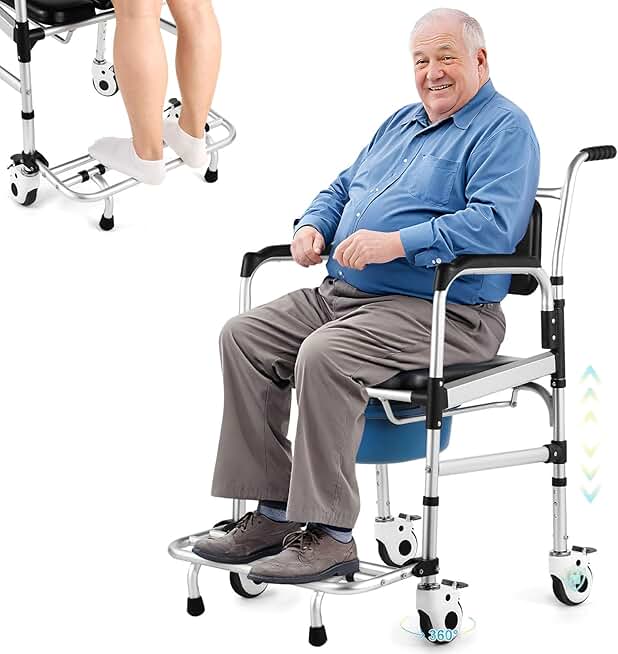 Shower Chair with Wheels, Enlarged Rolling Shower Chair with Locking Wheels, Adjustable Commode Chair for Handicap, Elderly, Injured or Disabled, 350 lbs Capacity