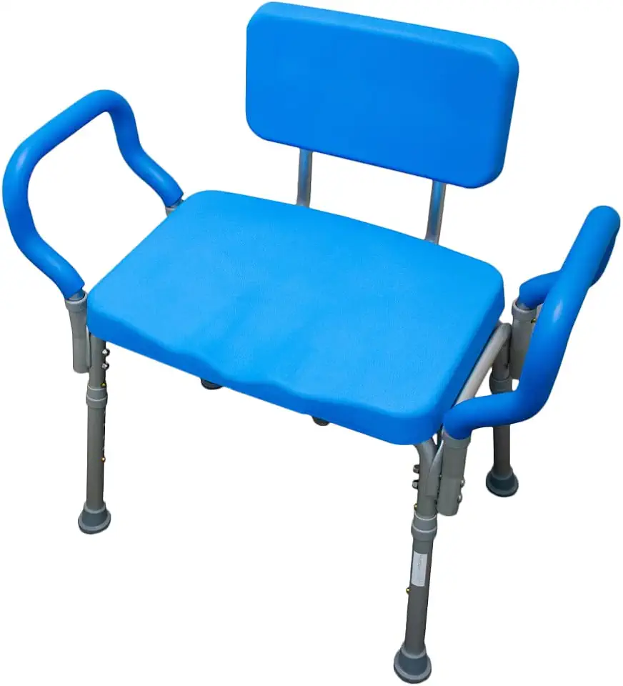 Padded Shower Chair and Bath Chair with Armrests, Comfortable Deluxe Shower Chair for Inside Shower and Bathtub for Elderly and Seniors, Extra Large, 600lb High Capacity, Institutional Quality, Blue