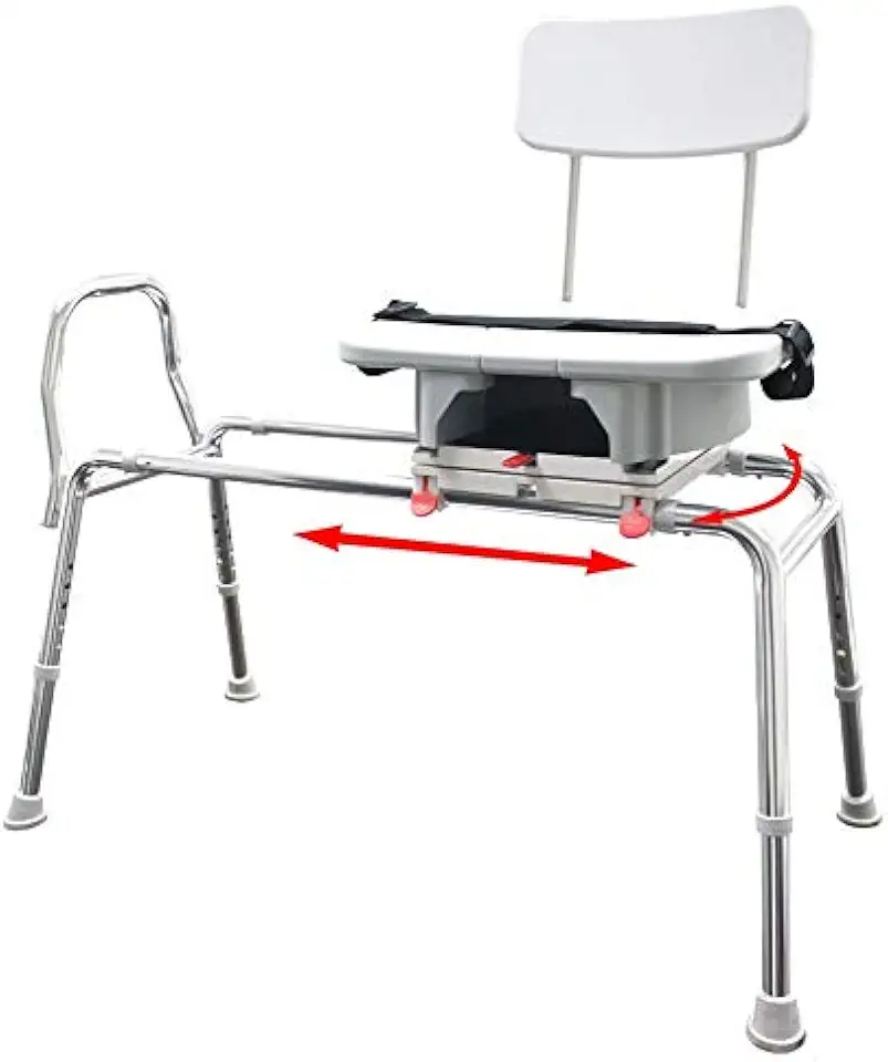 Eagle Health Supplies Swivel Sliding Shower Chair & Tub Transfer Bench with Cut Out, Height Adjustable, Heavy-Duty Capacity up to 400 LBs, for Safety Shower, for Elderly & Disabled (77663)