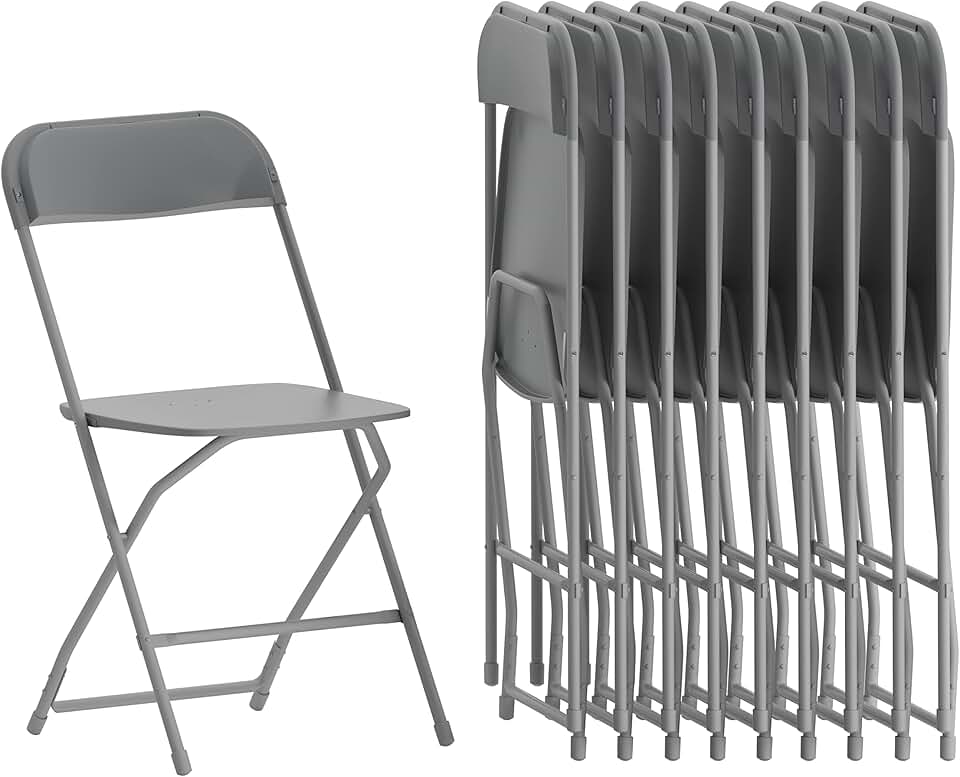 Flash Furniture Hercules Hercules Series Plastic Folding Chair - Grey - 10 Pack 650LB Weight Capacity Comfortable Event Chair-Lightweight Folding Chair