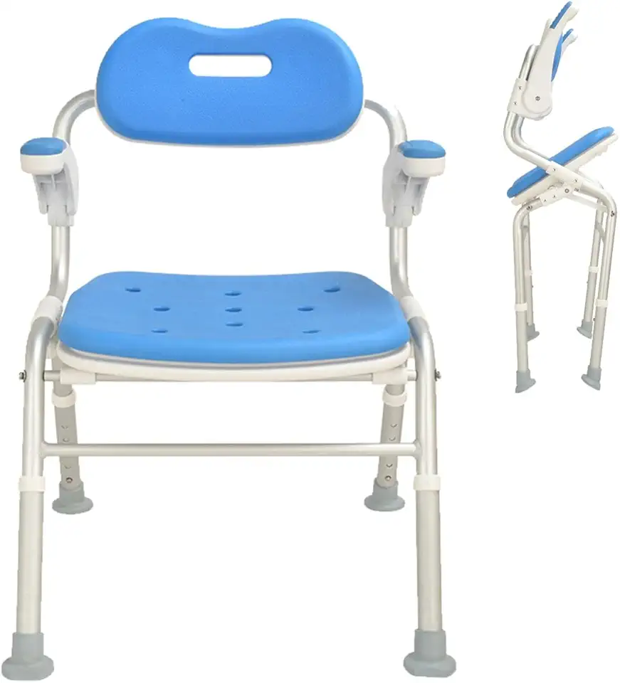 Non-Slip Feet Shower Seat,Foldable Bath Chair with Backrest Armrests,Shower Chair Folding Bathroom Seat Adjustable Height,Shower Seat for Seniors Elderly ap Disabled