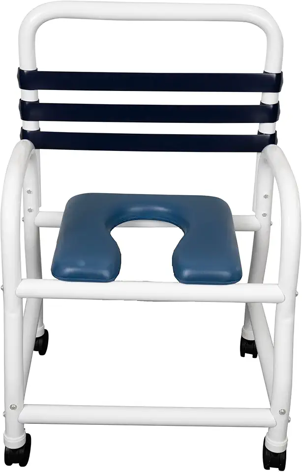 Deluxe New Era Patented Shower Commode Chair, 22" Internal Width, Open Front Removable Soft Seat,NO Commode Pail, 3" Twin All Locking Casters, 385 lbs wt Capacity