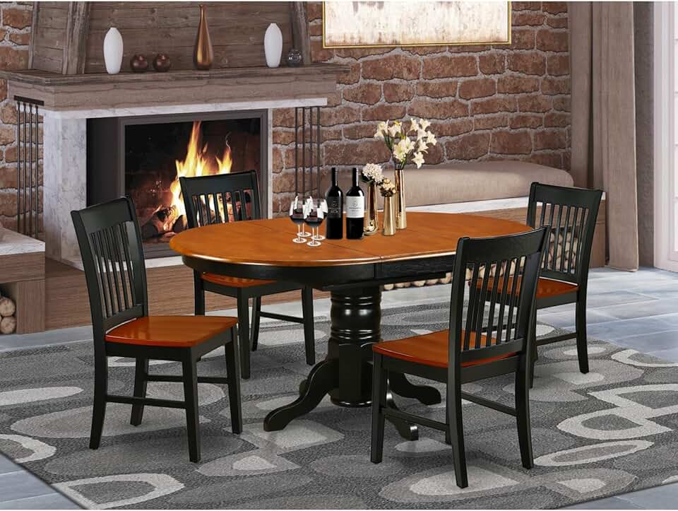 East West Furniture KENO5-BCH-W 5 Piece Dining Set Includes an Oval Dining Room Table with Butterfly Leaf and 4 Kitchen Chairs, 42x60 Inch, Black & Cherry
