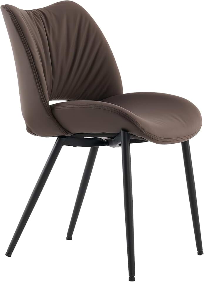 YOUTASTE Dining Chairs Set of 2 Upholstered Kitchen Room Chair Modern Armless Leather Dinner Chair Living Room Side Chair with Metal Legs and Thicked Pad Brown