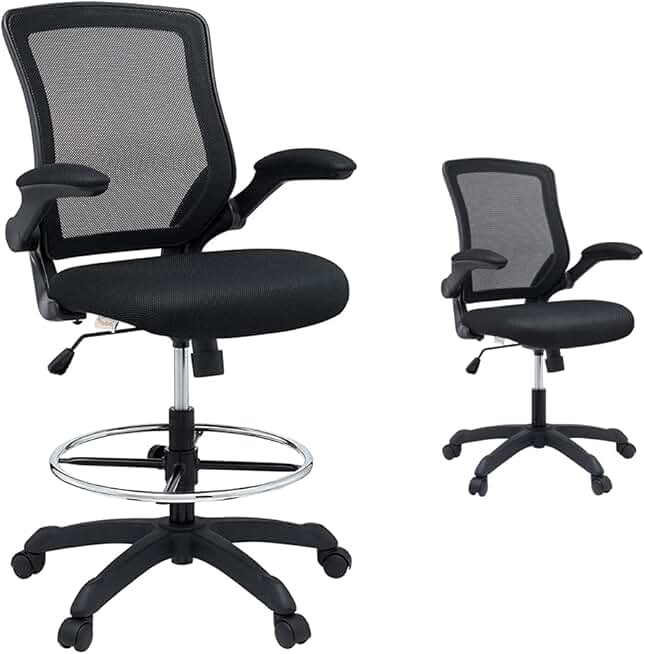 Modway Veer Office Chair and Drafting Chair Bundle in Black