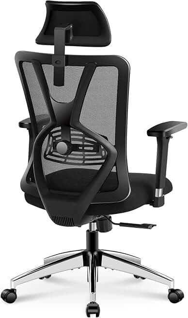 Ticova Ergonomic Office Chair - High Back Desk Chair with Adjustable Lumbar Support & 3D Metal Armrest - 130°Reclining & Rocking Mesh Computer Chair with Thick Seat Cushion & Rotatable Headrest