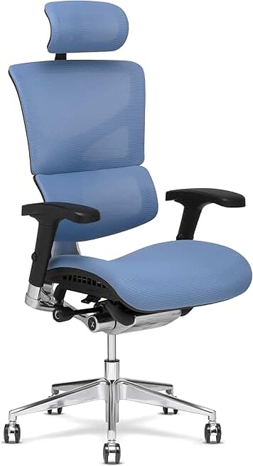 X-Chair X3 Management Office Chair, Blue A.T.R. Fabric with Headrest - High End Comfort Chair/Dynamic Variable Lumbar Support/Floating Recline/Highly Adjustable/Durable/Executive Office Desk Seat