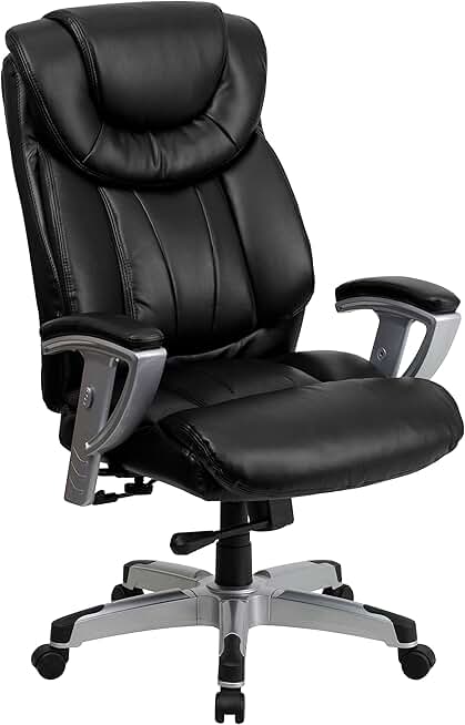Flash Furniture HERCULES Series Big & Tall 400 lb. Rated Black LeatherSoft Executive Ergonomic Office Chair with Silver Adjustable Arms