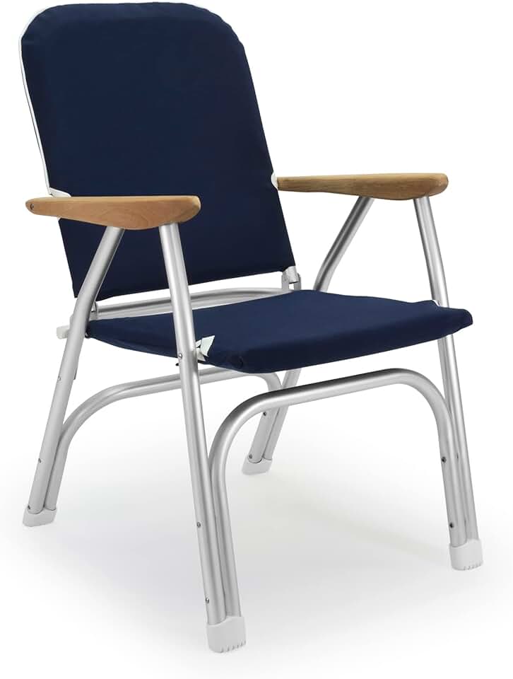 FORMA MARINE Boat Chair Navy Blue Heavy Duty 260/lbs Capacity Oversized Padded Deck Folding Marine Aluminum Teak Armrests B100NB