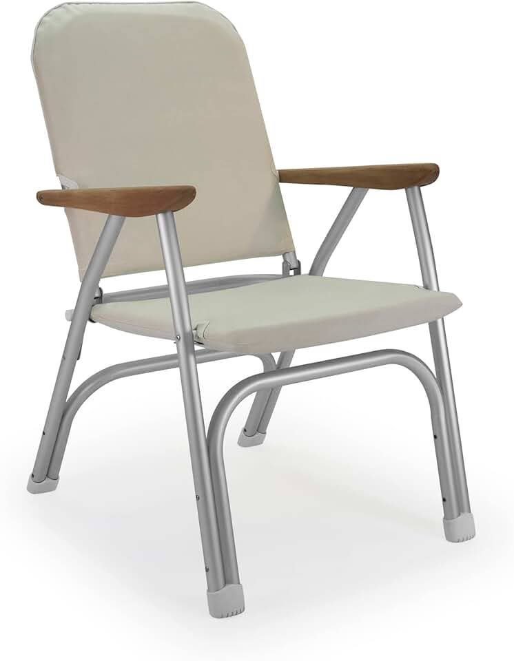FORMA MARINE Boat Chair Grey Heavy Duty 260/lbs Capacity Oversized Padded Deck Folding Marine Aluminum Teak Armrests B100G