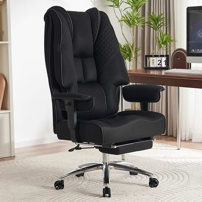 Big and Tall Office Chair 400lbs Wide Seat, Mesh High Back Executive Office Chair with Foot Rest, Ergonomic Office Chair Lumbar Support for Lower Back Pain Relief (Mesh Black)