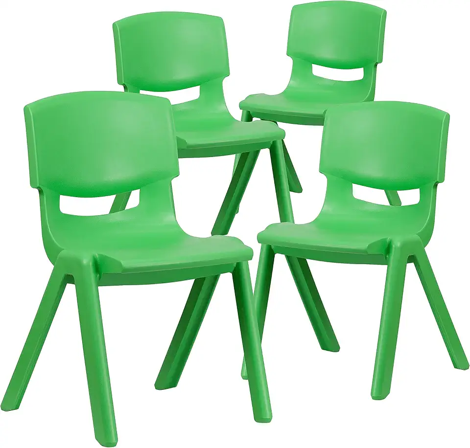 Flash Furniture 4 Pack Green Plastic Stackable School Chair with 15.5'' Seat Height