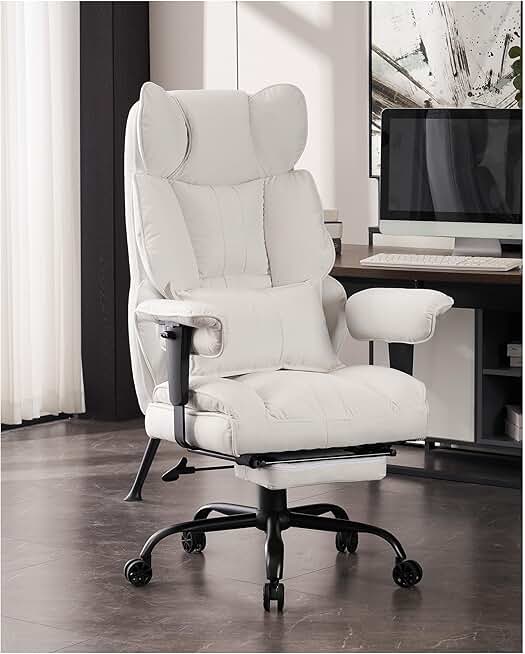 Efomao Fabric Office Chair, Big and Tall Office Chair 400 lb Weight Capacity, High Back Executive Office Chair with Foot Rest, Ergonomic Office Chair for Back Pain Relief, White