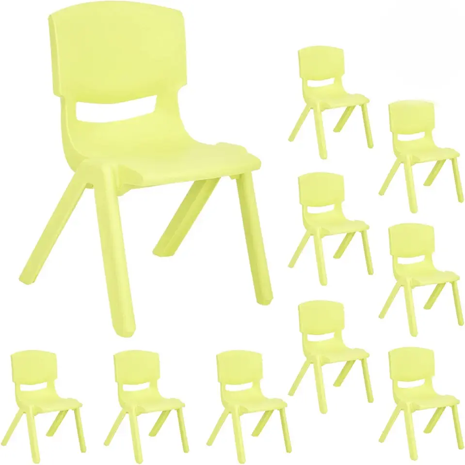 JOON Stackable Plastic Kids Learning Chairs (10 Pack), 20.5x12.5x11 Inches, The Perfect Chair Sets for Playrooms, Schools, Daycares and Home, Colorful Design, Lime Green