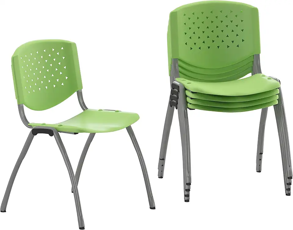 Flash Furniture HERCULES -5 Pack 880 lb. Capacity Green Plastic Stack Chair | Comfortable Seating with Durable Design