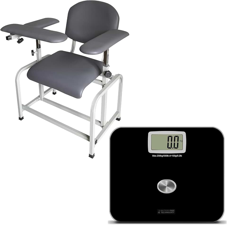 Helsevesen Comfortable Padded Blood Drawing Chair + SIKE Battery-Free Scale, 550lbs Extra Wide