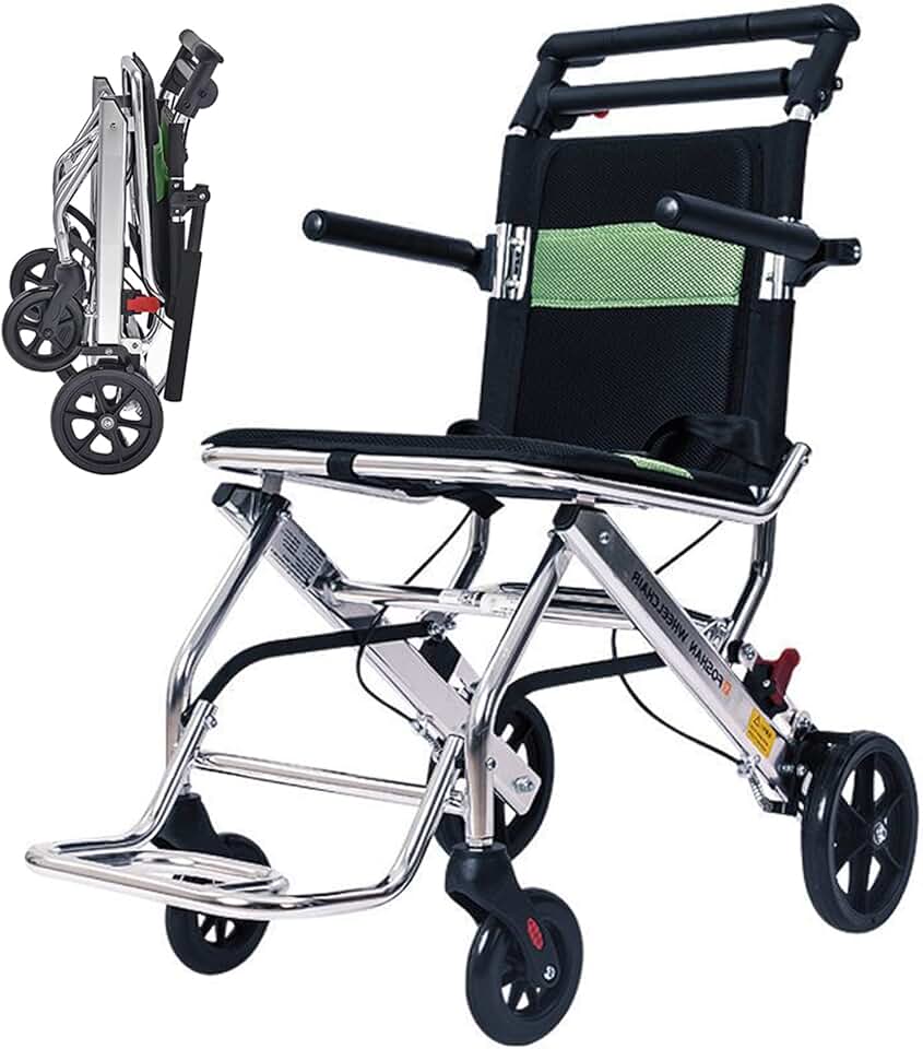 Lightweight Transport Travel Wheelchair, Folding Portable Ultralight Wheelchair for Adults, Compact Wheelchair with Handbrake, Safety Belt(Green)