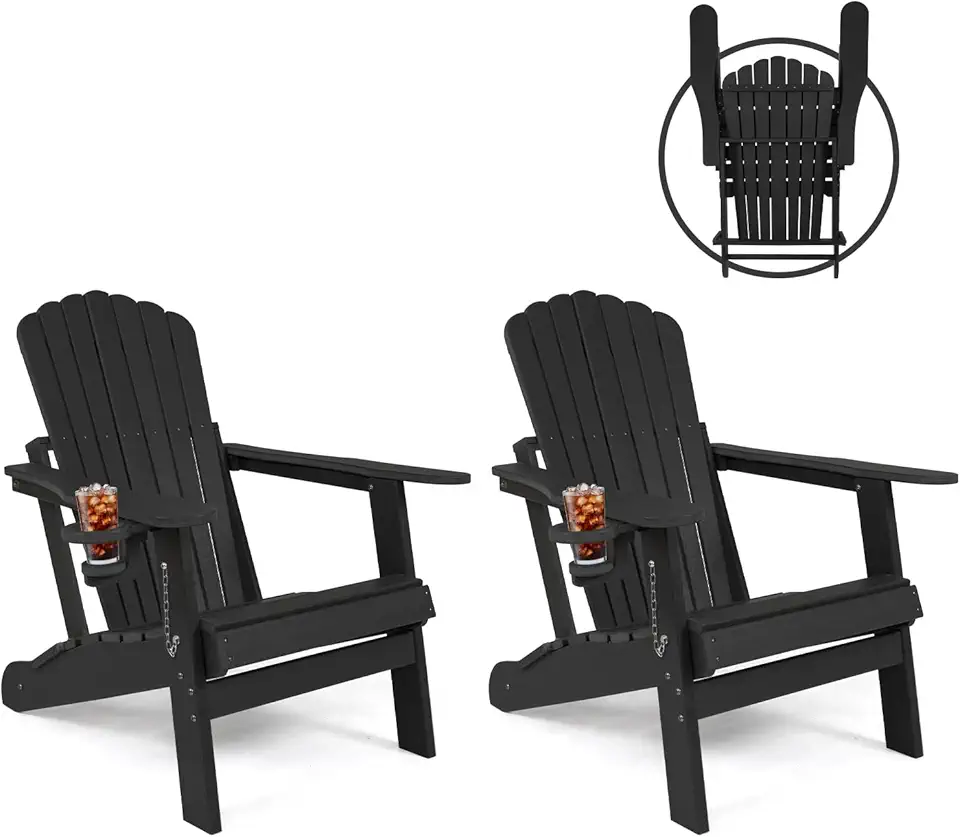 Folding Adirondack Chairs Set of 2, Fire Pit Chairs, Plastic Adirondack Chairs Weather Resistant with Cup Holder, Composite Adirondack Chairs, HDPE Adirondack Chairs Outdoor