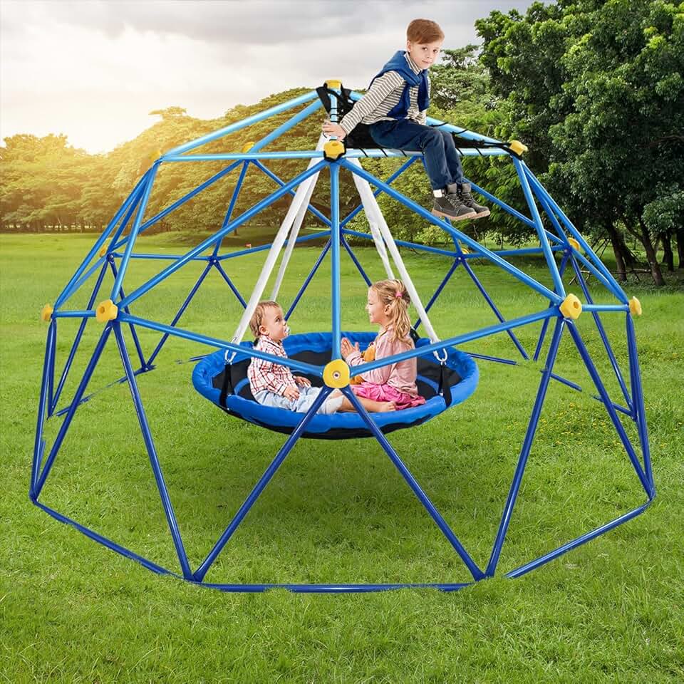 10ft Climbing Dome with Net Chair, Geometric Dome Climber Play Center with Rust & Uv Resistant, Supporting 1000lbs, Kids Jungle Gym Playground Indoor/Outdoor with Much Easier Assembly