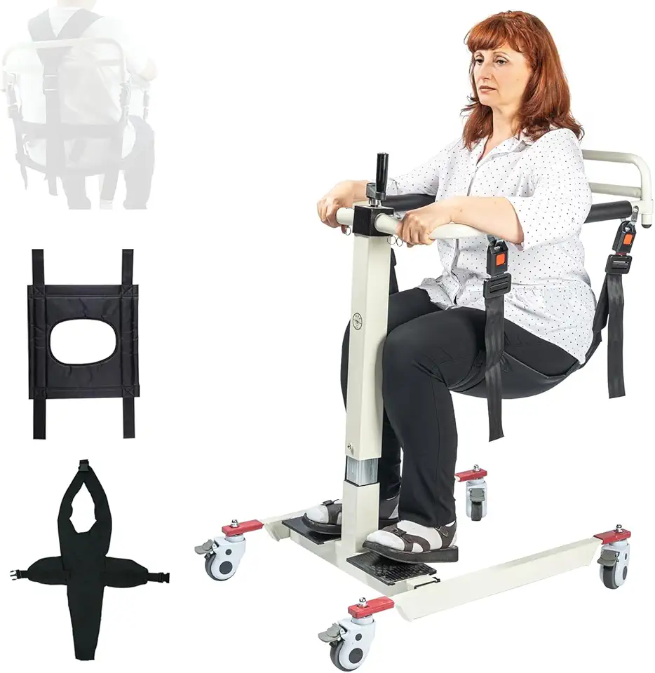Patient Lift Transfer Chair, Height and Width Adjustable Transport Chair for Bedside, Car and Wheelchair Mobility, Effortless Assembly, Usage and Storage in Car Trunk (Two Cushions and Safety Belt)