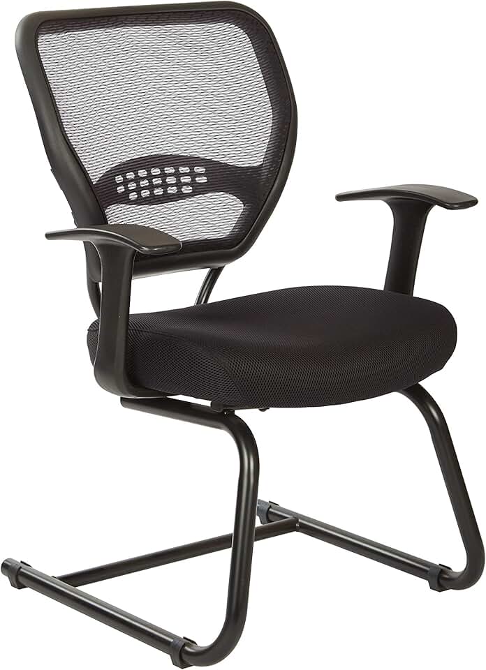 Space Seating 55 Series Professional Dark Air Grid Back Visitor's Chair with Built-in Lumbar Support, Fixed Angled T-Arms and Heavy Duty Sled Base, Black Mesh