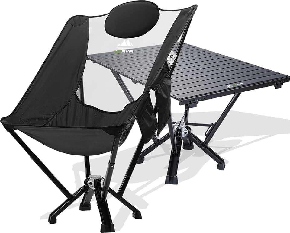 Oversized Tall Portable Camping Chair for Adults [2-Pack: 1 Plus Size Chair + 1 Rectangular Table], Heavy Duty Support up to 600 lbs, Easy Setup, High Back Folding Camp Beach Chair for Outside - Black