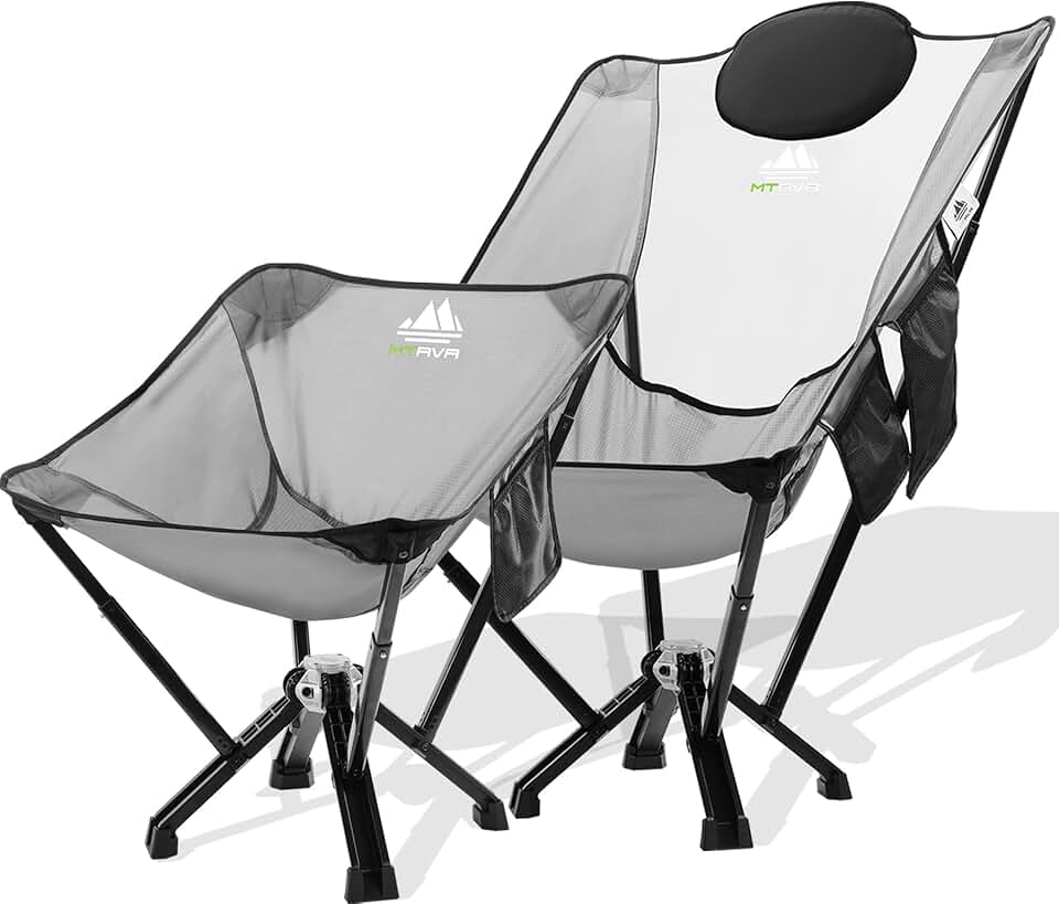 Portable Folding Camping Chair for Adults [2 Packs Silver Camp Chairs, 1 Regular Size+ 1 Plus Size], Heavy Duty 600 lbs Capacity, No Installation Needed, Thickened Aluminum Frame