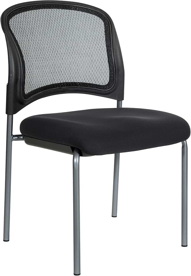 Office Star ProGrid Mesh Back Deluxe Stacking Visitor's Chair with Padded Seat and Titanium Finish Frame, Armless, Coal FreeFlex Fabric