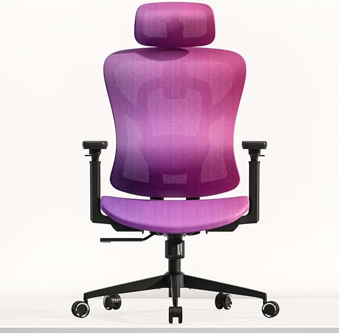 Ergonomic Mesh Office Chair, Gradient Purple Desk Chair with 3D Armrests, Adaptive Thoracic Support, 3D Lumbar Support & Adjustable Headrest, high Back Home Swivel Computer Chair with Tilt Function