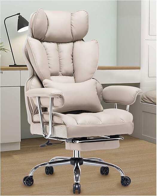 Efomao Desk Office Chair 400LBS, Big and Tall Office Chair, PU Leather Computer Chair, Executive Office Chair with Leg Rest and Lumbar Support, Grey Office Chair 1