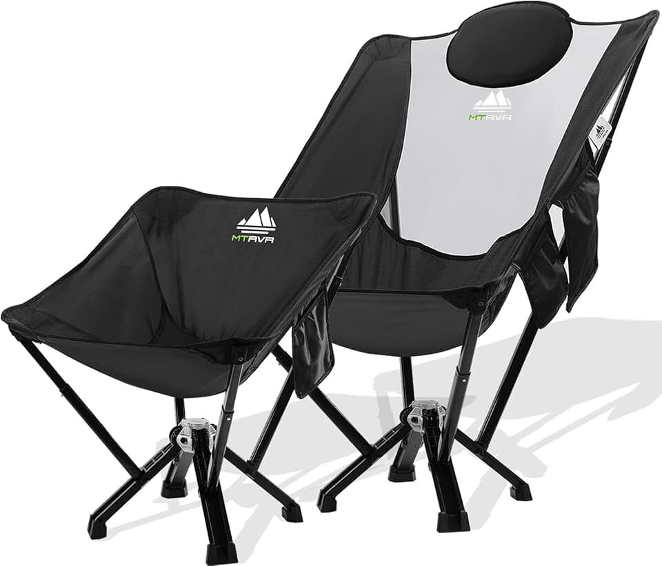 Outdoor Folding Camping Chair for Adults [2 Packs Black Camp Chairs, 1 Regular Size+ 1 Plus Size], Heavy Duty 600 lbs Capacity, No Installation Needed, Thickened Aluminum Frame