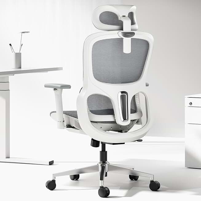 Hbada P2 Ergonomic Office Chair with 3D Lumbar Support, Big and Tall Mesh Chairs with Adjustable 3D Arms, Headrest & Comfortable Seat, Home Office Desk Chair, White