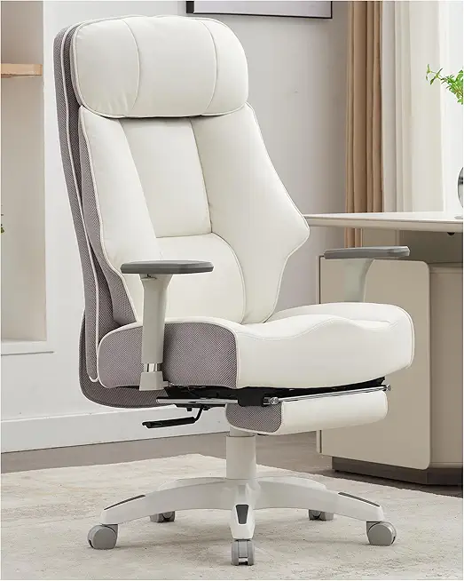 Big and Tall Office Chair 400lbs, Executive Office Chair with Foot Rest, High Back Office Chair with Back Support, Oversized Office Chair for Heavy People, Leather Office Chair White