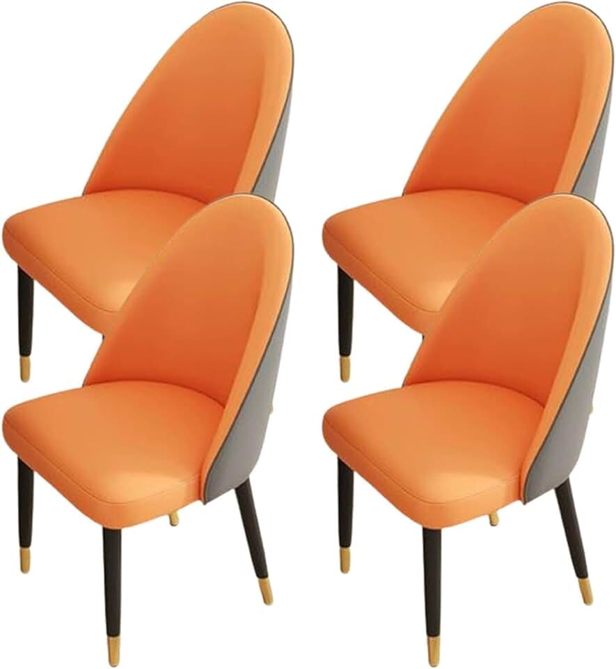 Meal Chairs 4 Modern Faux Leather Kitchen Chairs with Upholstered Cushion Seat Metal Anti-Skid Legs Side Chair for Living Room Bedroom Comfortable Durable Multipurpose Office Chair/H/Black Gol