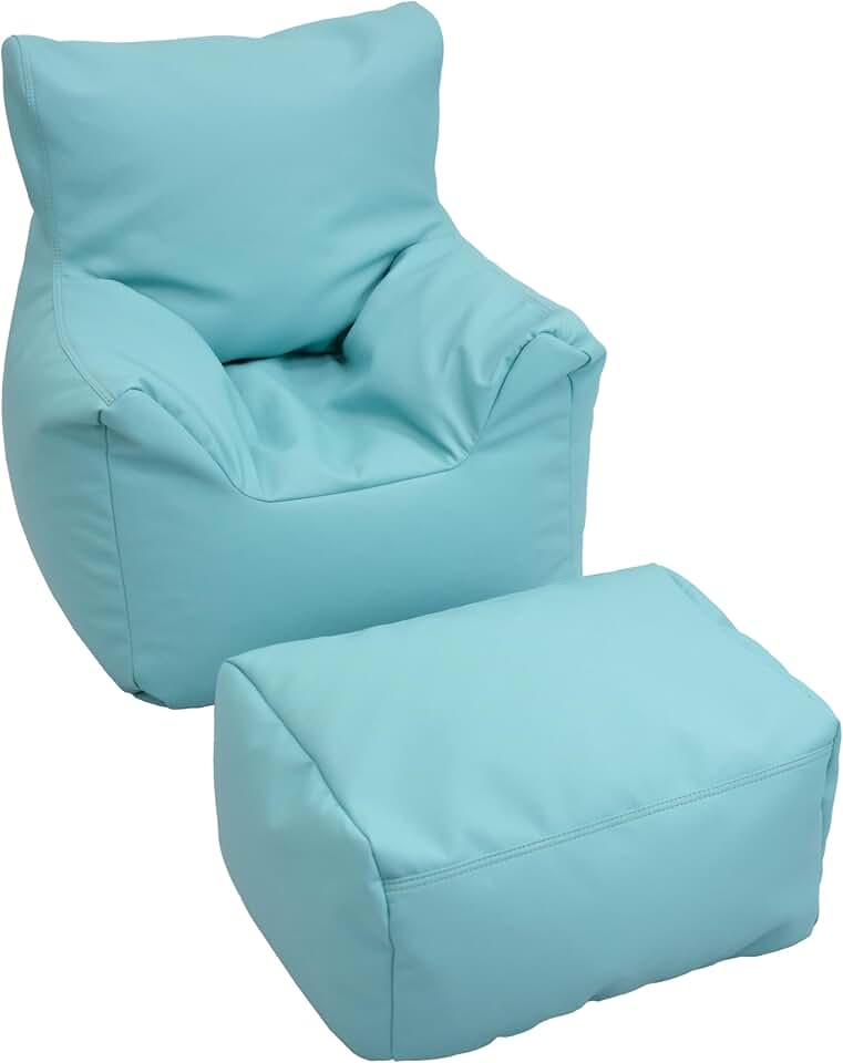 Cozy Chair and Ottoman Set, Flexible Seating Classroom Furniture, Comfy Kids Chairs, Aqua