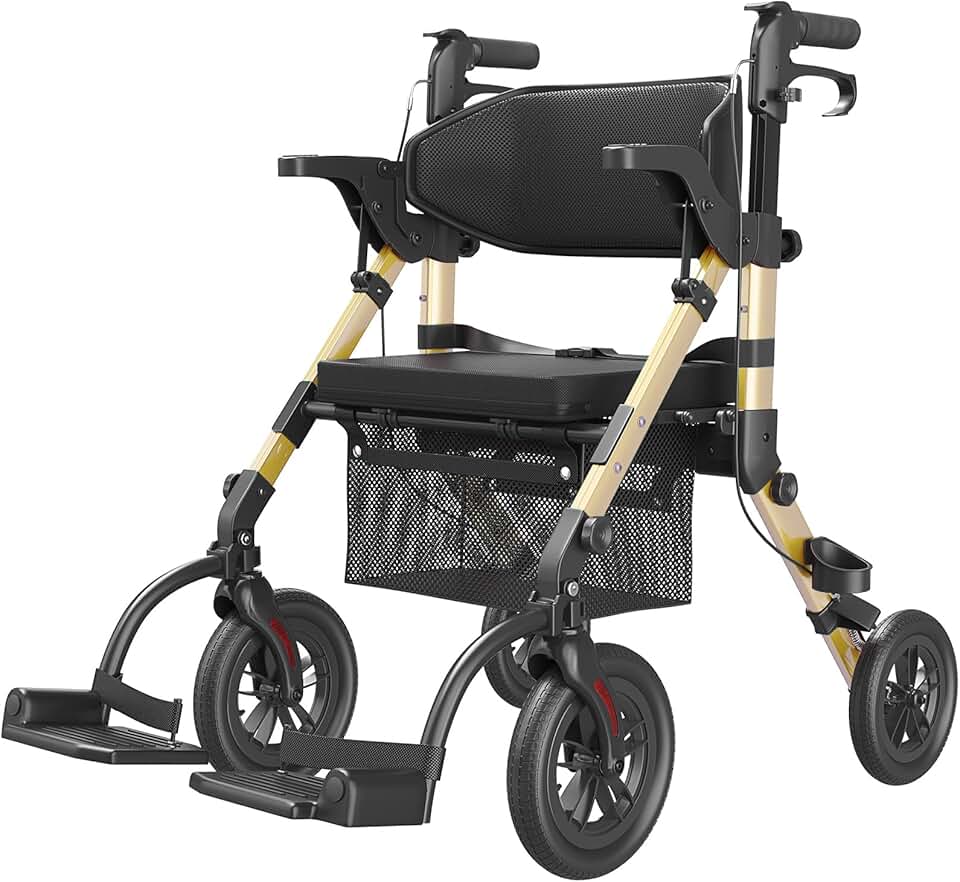 Walkers for Seniors, Rollator Walker with Seat, Transport Wheelchair Lightweight Foldable, Adult Rolling Walker, Rollator Transport Chair with Brakes, 2 in 1 Walker Wheelchair Combo Z51-2024 New