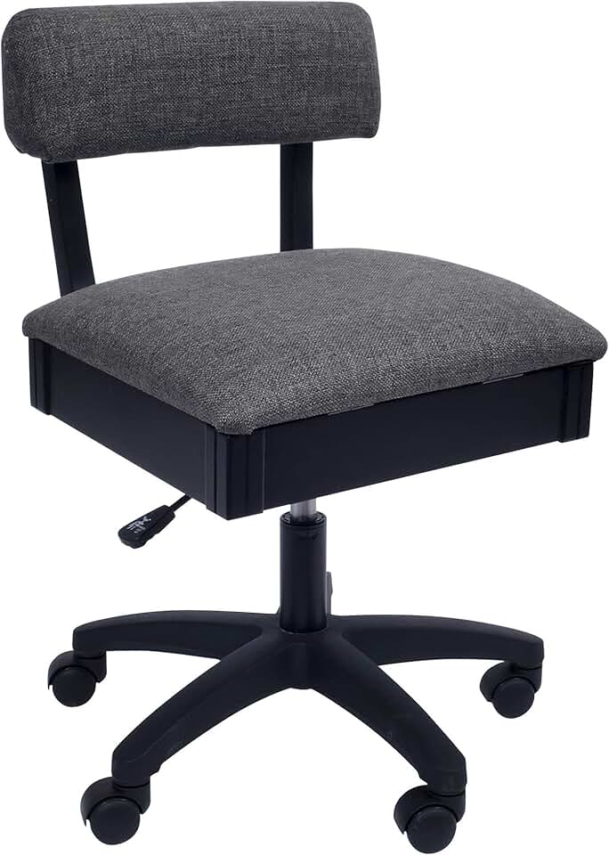 Arrow Sewing H8123 Adjustable Height Hydraulic Sewing and Craft Chair with Under Seat Storage and Solid Fabric, Lady Gray Fabric