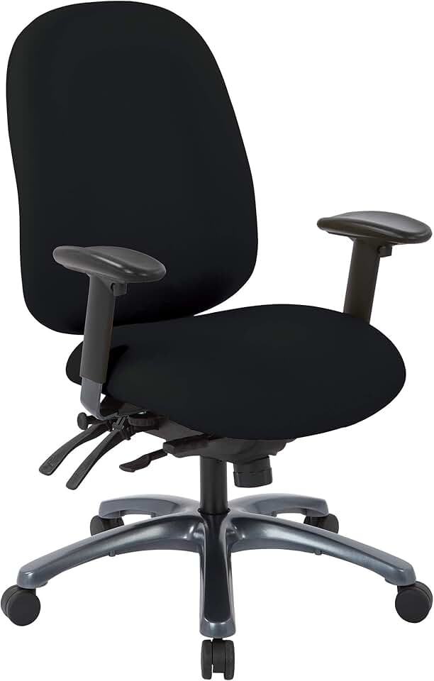 Office Star 8500 Series Multi-Function Ergonomic Executive Office Chair with Seat Slider and Titanium Finish Base, High-Back, Dillon Black Fabric