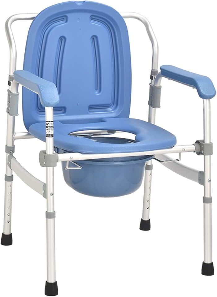 NaoSIn-Ni Mobile WC Chair Toilet Seat Commode with Seat, Lid, Handles, Ergonomic Seat, Non-Slip Rubber Tips, for Indoor and Outdoor