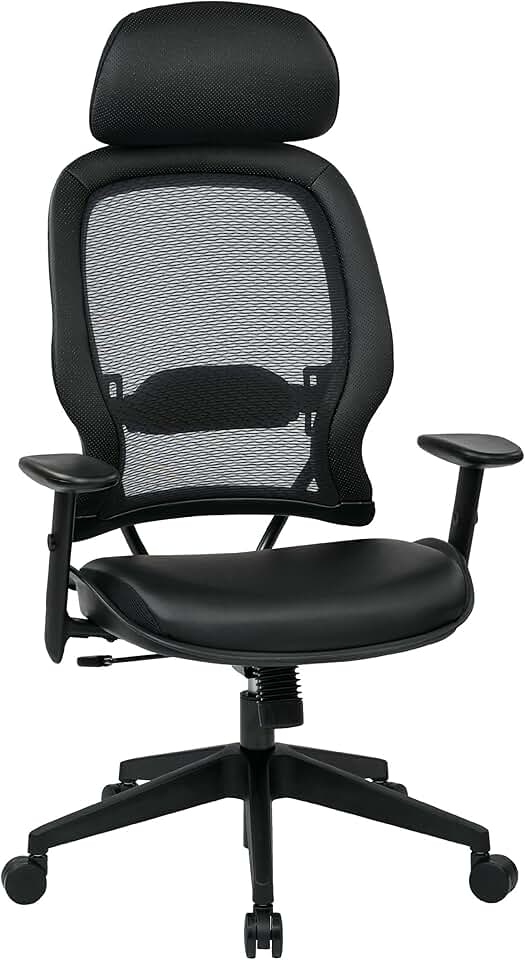 SPACE Seating Professional AirGrid Dark Back and Padded Black Eco Leather Seat, 2-to-1 Synchro Tilt Control, Adjustable Arms and Tilt Tension with Nylon Base Executives Chair with Adjustable Headrest