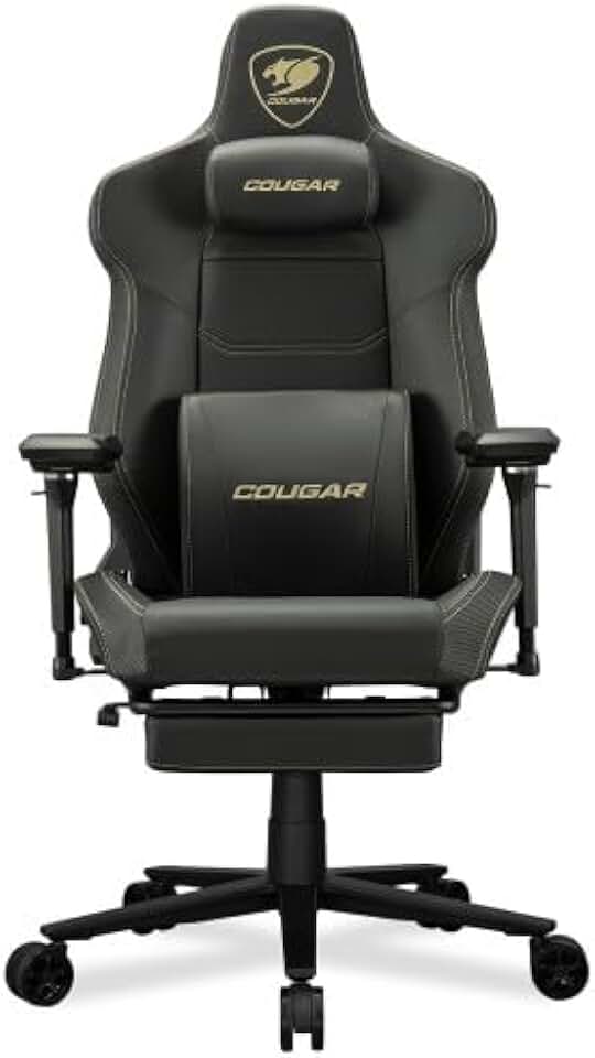 COUGAR Armor EVO M Gaming Chair with Breathable Premium PVC Leather, 5D Adjustable Armrests, Retractable Footrest, Lumbar Cushion, Magnetic Neck Pillow Foam (Gold)