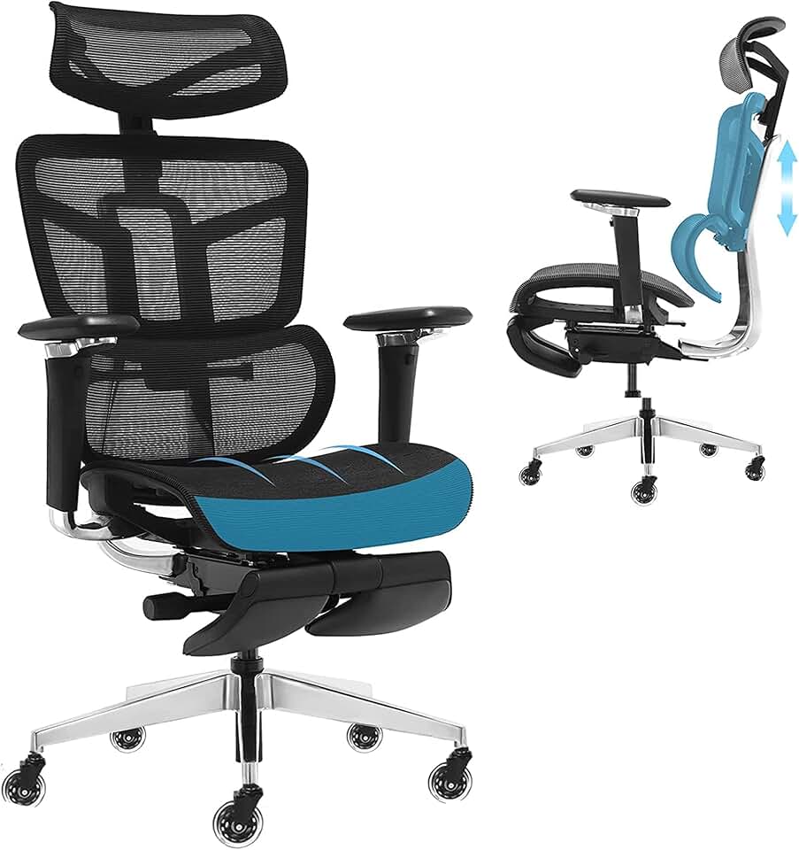 Ergonomic Office Chair with Foot Rest, High Back Desk Chair with 3D Adjustable Backrest, Mesh Computer Chair with 5D Armrest and Breathable Mesh Seat for Relaxation, 5 Years Warranty