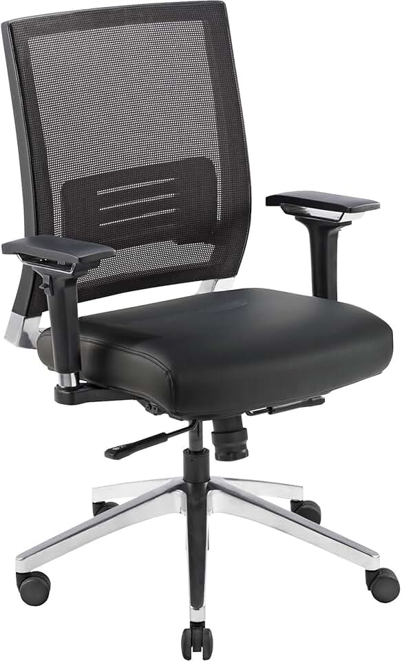 Space Seating Dark Air Grid Seat and Back Adjustable Executive Office Chair with Padded Arms and Built-in Lumbar Support, Black