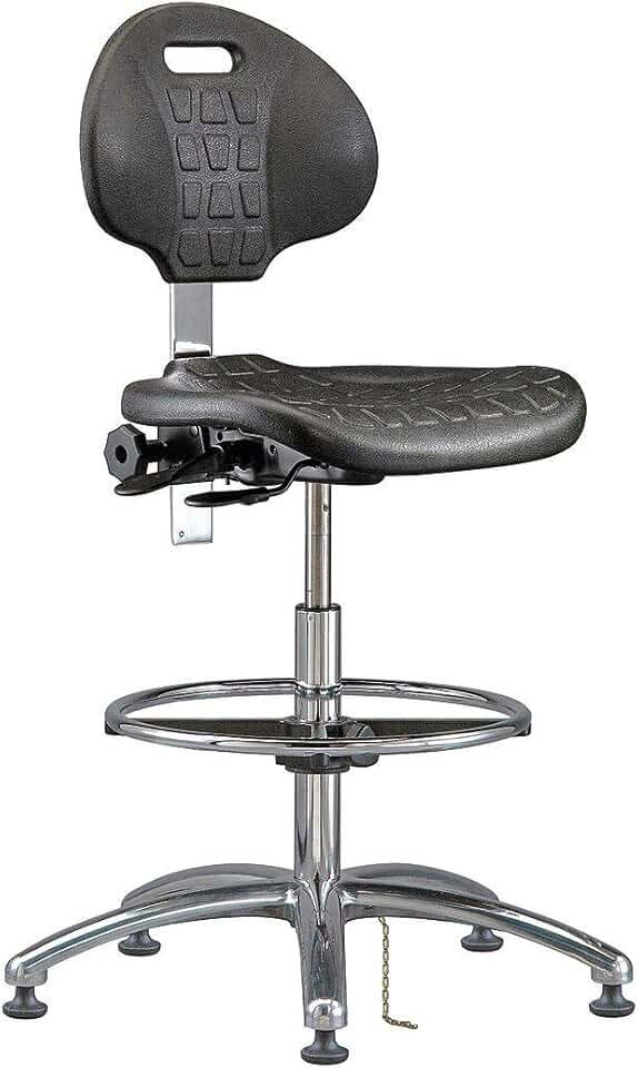 Bevco 7551E Class 10 Certified Cleanroom Ergonomic ESD Chair, Tilt Back Adjustment, 18" Dia. Adjustable Chrome Footring, Polished Aluminum Base, 20-1/2"to 30-1/2" Height Adjustment