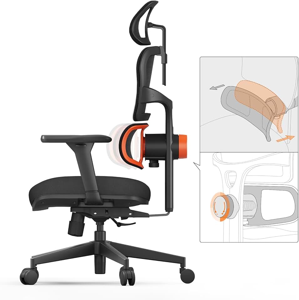 Newtral Ergonomic Desk Chair with Fully Adaptive Lumbar Support - Home and Ofiice Chair for Back Pain with 4D Armrest, Adjustable Headrest, Mesh Back, Tilt Lock, Computer Task Chair