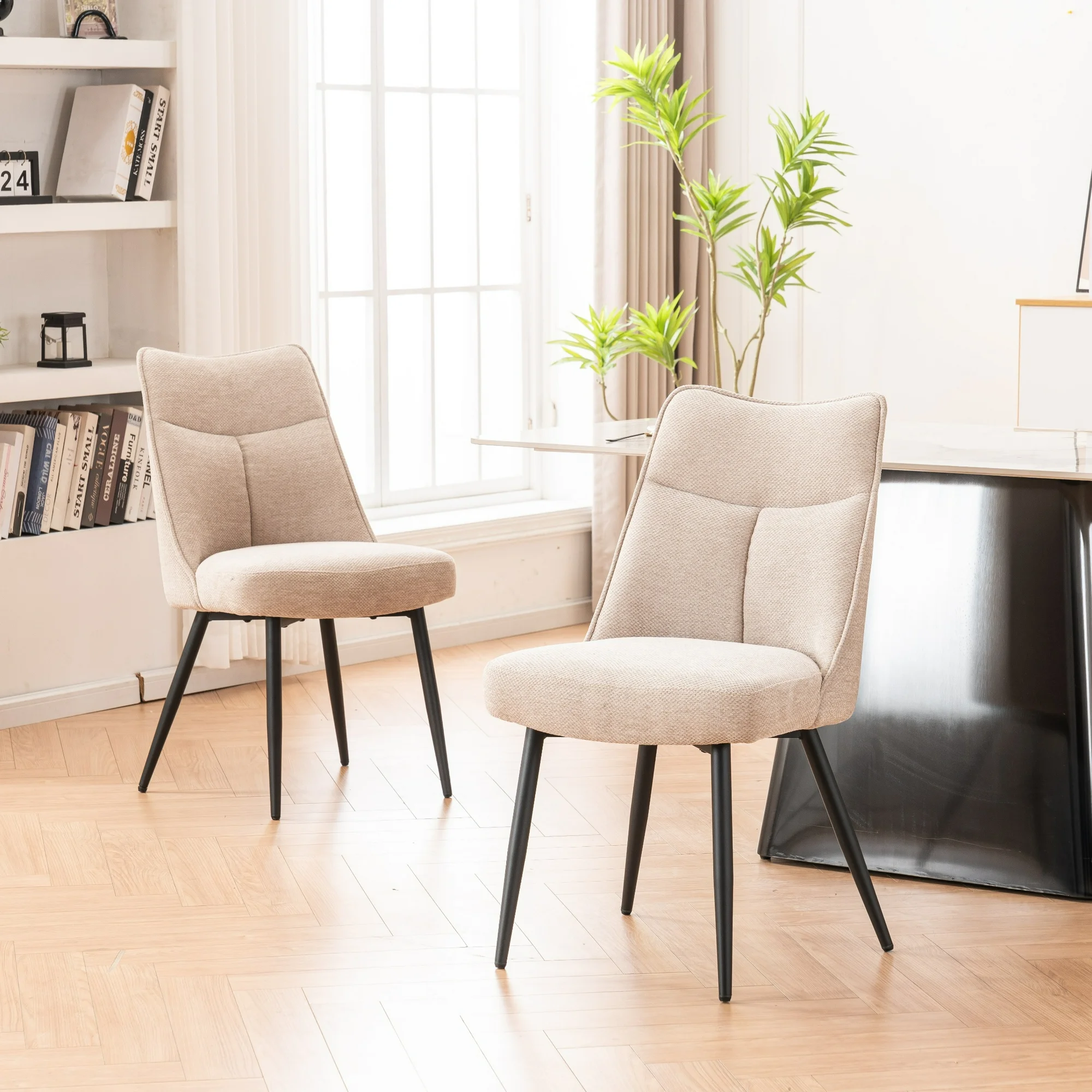 Kidol & Shellder Dining Chair Set of 2, Kitchen Chairs, Modern Upholstered Side Chairs with Armless, Cushioned Seat, Cream