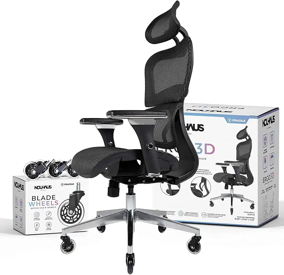 Nouhaus Ergo3D Ergonomic Office Chair Lumbar Support Mesh Office Chair with 4D Adjustable Armrest, Adjustable Headrest and Wheels, Mesh High Back Home Office Desk Chairs(Black)
