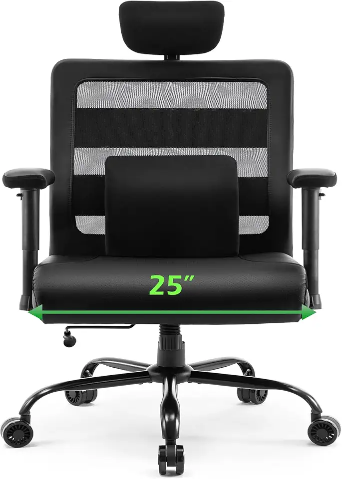 Extra Wide Seat Office Chair 500lbs Big and Tall Heavy Duty Ergonomic Mesh High Back Desk Chair with Adjustable Headrest, Lumbar Support, Arms for Home & Office