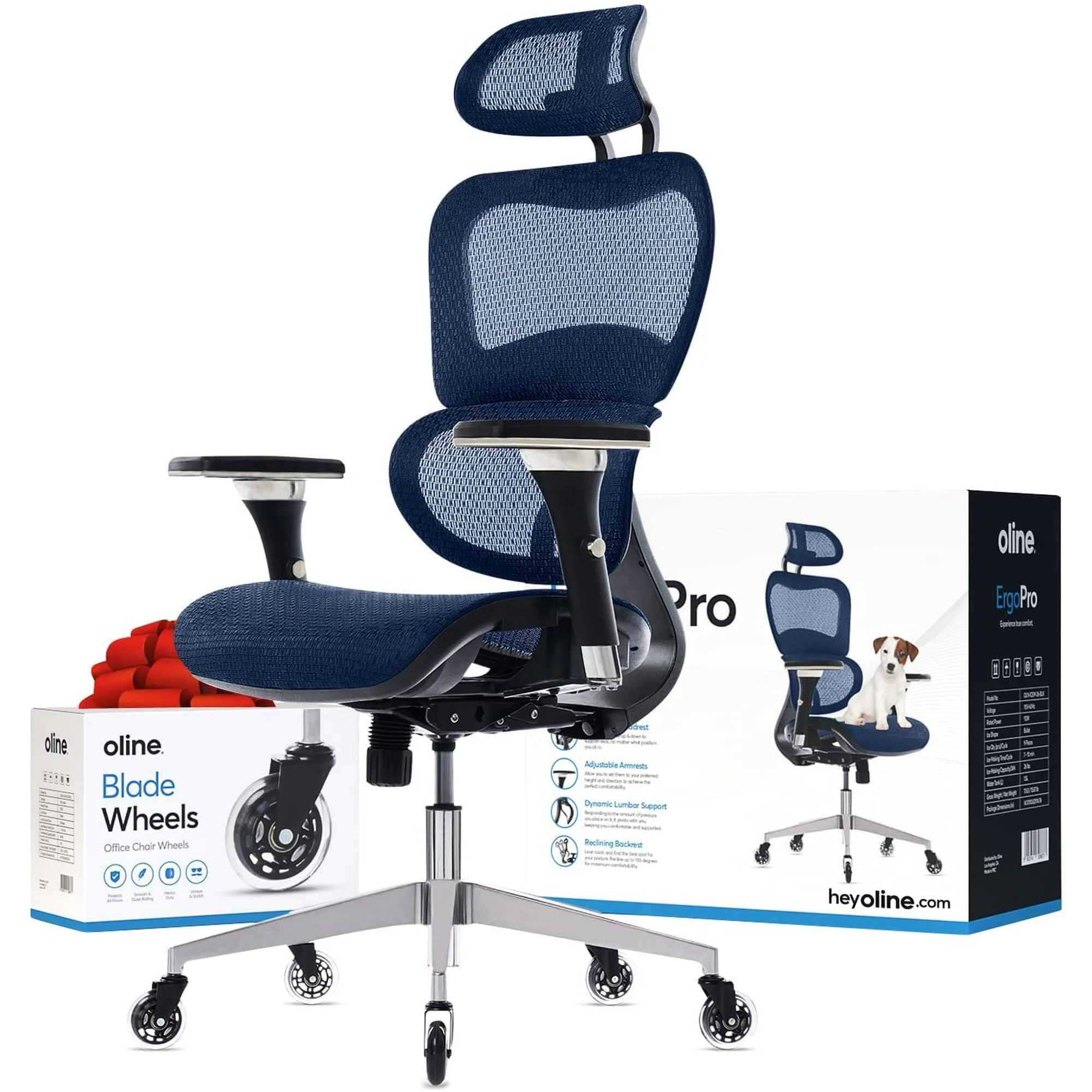 LALANG ErgoPro Ergonomic Office Chair - Rolling Desk Chair with 4D Adjustable Armrest, 3D Lumbar Support and Blade Wheels - Mesh Computer Chair, Gaming Chairs, Executive Swivel Chair (Navy Blue)