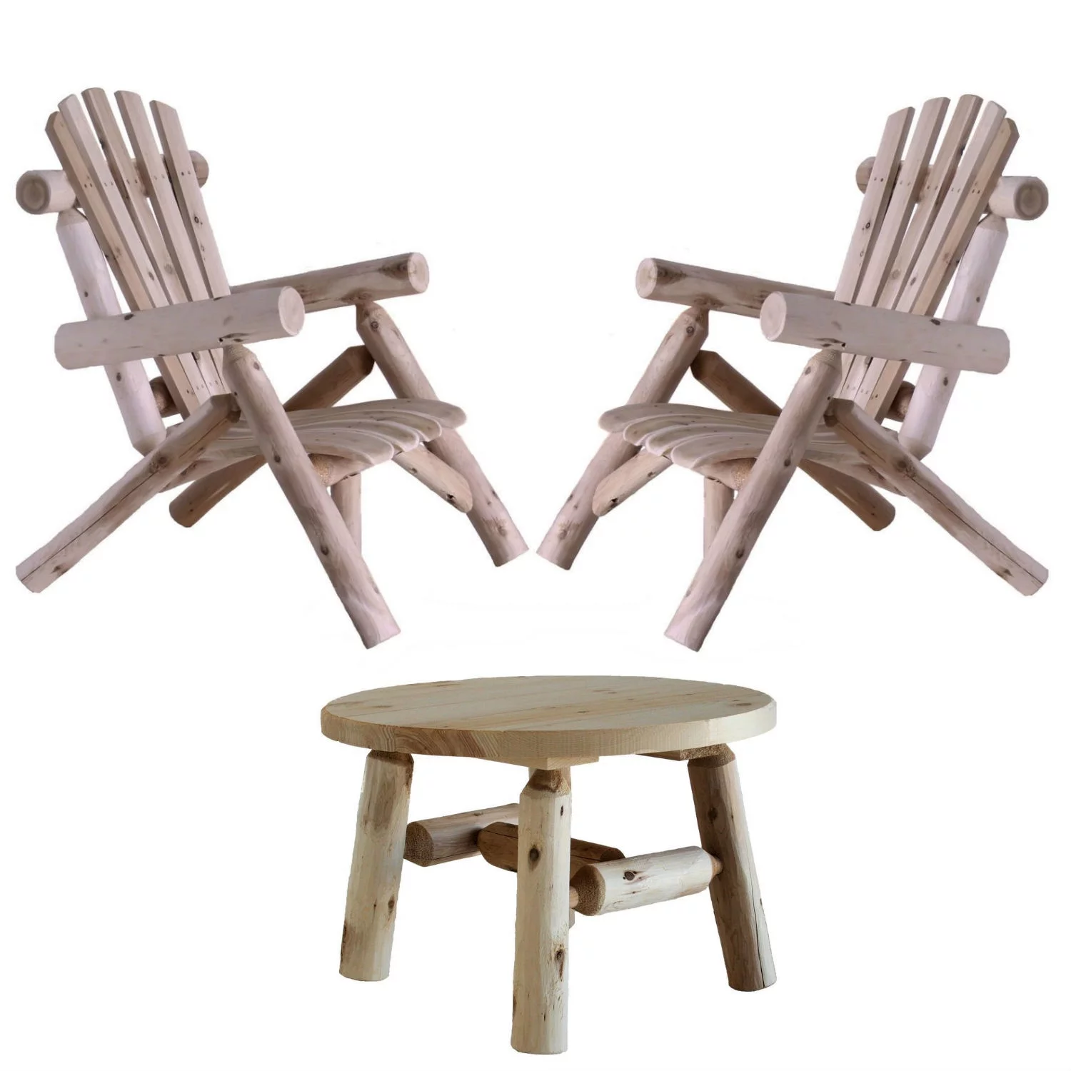 Lakeland Mills Cedar Log Patio Lounge Chair (Set of 2) with Round Table